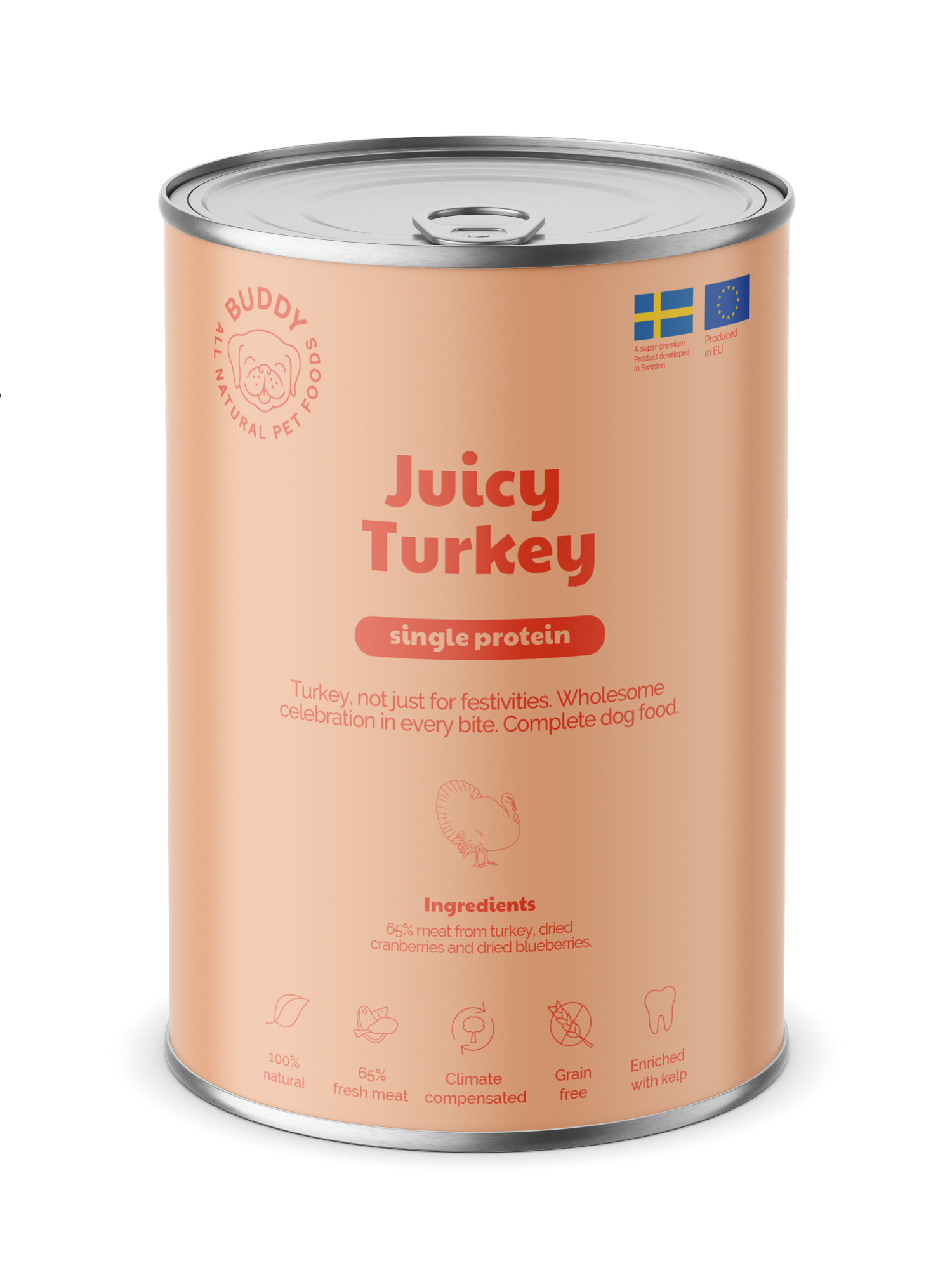 Voor een gezonde ontwikkeling van de botten en gewrichten, gemaakt van verse kalkoen en zalm.